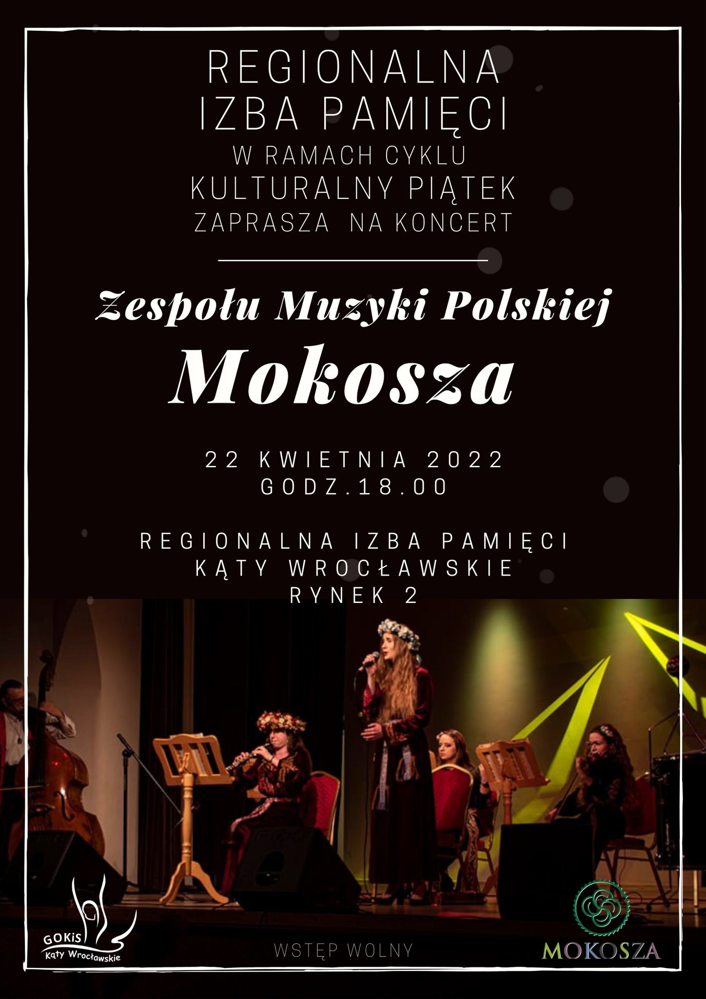 ,,Kulturalny piątek” z Mokoszą View Calendar 22/04/2022 18:00 - 19:00 Regionalna Izba Pamięci w Kątach Wrocławskich ul. Rynek 2 55-080 Kąty Wrocławskie